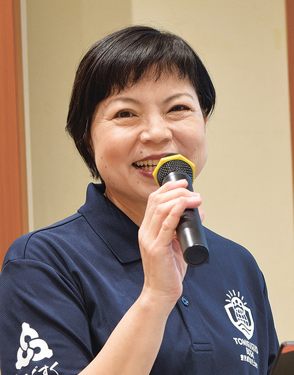 「避難する際、靴がバラバラだとパニックに。帰宅後に靴を並べておくのも防災につながる」と説明。掃除や整理整頓、近所への挨拶、時短にもなるビニール袋での調理、夜間や停電時に役立つ人感センサーライトなど、普段から取り組める事柄を話した。身を守る基礎知識は、子どもも分かるクイズや絵本の読み聞かせを交え解説した。