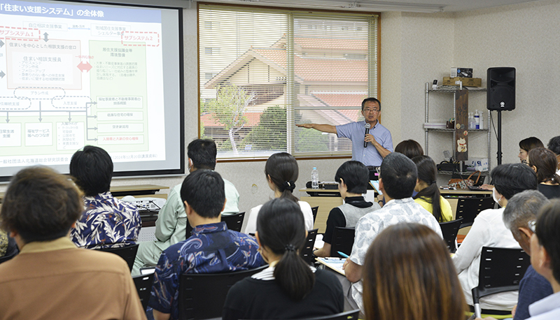 勉強会で沖縄県の現状と今後の展望について説明した沖縄大学名誉教授の島村聡さんは「高齢者の住まい確保は、福祉と住宅、医療の連携が欠かせない課題。空き家活用や見守り支援など複数の仕組みを重ね合わせていくことが重要。行政と民間がどう連携するかも問われている」と指摘した。