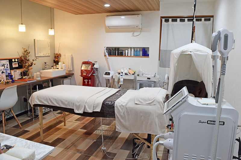 コロナ禍をきっかけに事業の多角化を考え、2023年からケアサロン「piacere(ピアチェーレ)」をオープンさせた。女性向けに脱毛、ネイルケア、筋膜ケア、ヨモギ蒸しの四つのメニューを行っている。
