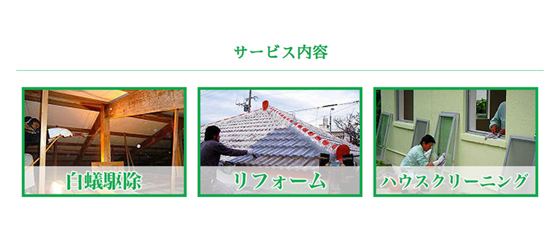 シロアリ駆除、リフォーム、ハウスクリーニングなど住まいのパートナーとしてワンストップで対応する