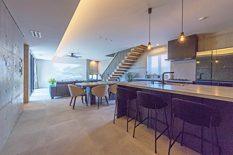 家造りは土地柄ゆえに難航したが、この敷地を購入したのは「親族と海の存在」が理由だった。「これまでは家族との時間は少なかったが、入居後は1階LDKで妻や母、親族と食卓を囲んだり、海外に暮らす友人が泊まりにきたり。生活が一変しました」とDさん。長期滞在ができるようゲストルームを2階の母親、3階のDさん夫妻の生活エリアそれぞれに設けている。「屋上テラスから海を眺めることもできる。季節も涼しくなってきたので、屋上でパーティーを楽しみたい」。