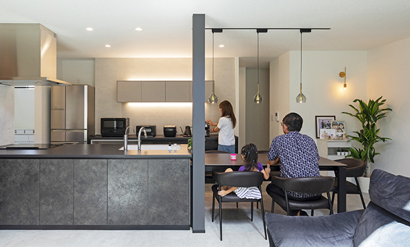 Aさん夫婦は、ホテルのように高級感や清潔感があり、生活感を感じさせない「ホテルライクな家」を望んでいた。こだわりを詰め込み完成させた住宅は、見た目だけではなく、動線計画も配慮された暮らしやすさも兼ね備えたものとなった。