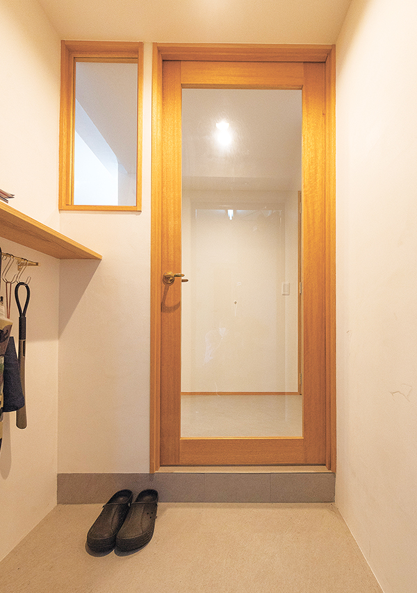 玄関前には、猫の逃走防止のための扉を作った。断熱にも役立っているそう
