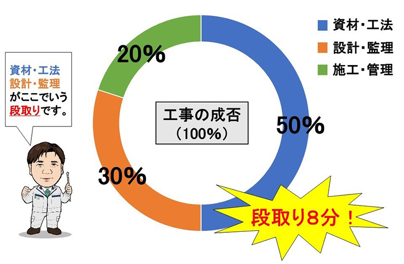 図1 工事の成否は、資材・工法の選定や優れた設計・プランとその工事監理で8割が決まる。段取りが良ければ、施工管理も円滑に進むことは言うまでもない
