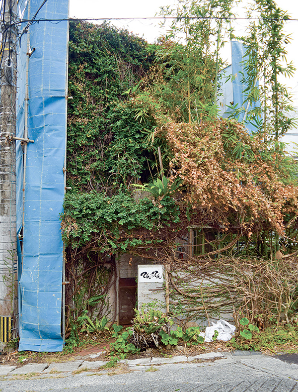 屋上も壁面も緑化された「てんtoてん」は目視で劣化状況を確認できなかったが、施工を行った(有)TOP企画の泉川寛彰さんは「築年が経った建物で室内側に亀裂などがあると、外壁の経年劣化による亀裂から雨水が浸透し、鉄筋が膨張している場合が多い。そのまま放置すると劣化が進行していきます」と説明する。植物や土を撤去後、確認したところ、ひび割れの位置は「内側と外側でほぼ一致していました」。