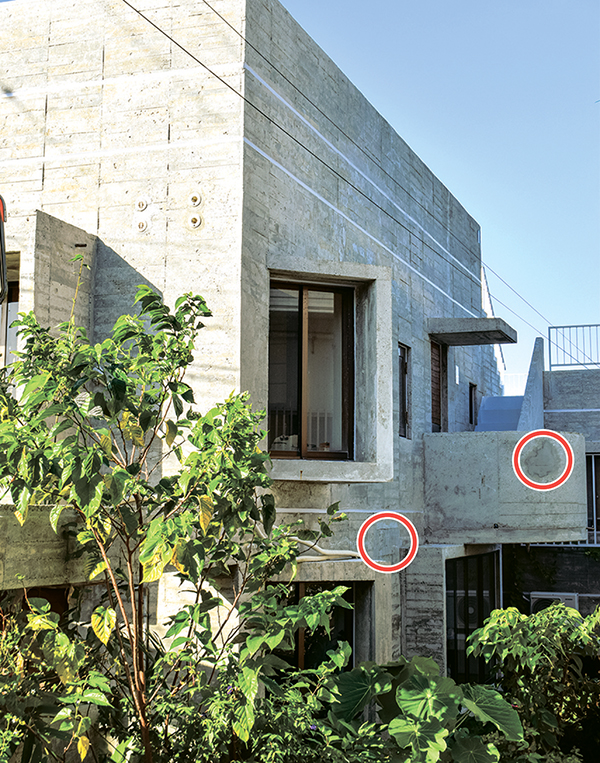 沖縄県那覇市に建つ築49年の住宅兼店舗「てんtoてん」。天井や壁からの雨漏りなどにより、施主の真喜志亮さんは補修工事することを決めた。鉄筋コンクリート(RC)打ち放しの質感を損なわないよう、「表面含浸材」を採用。部位ごとで防水塗装と使い分けながら、劣化抑制と美観維持を両立させて、建物をよみがえらせた。