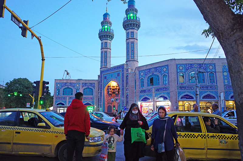 買い付けの帰り道。モスクの青とタクシーの黄色がこの地域のラグのようだった
