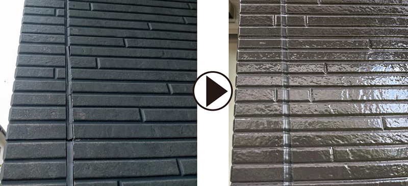 施工前(左)と比べると施工後(右)はツヤツヤに。このつややかな塗膜が外壁をしっかり保護する