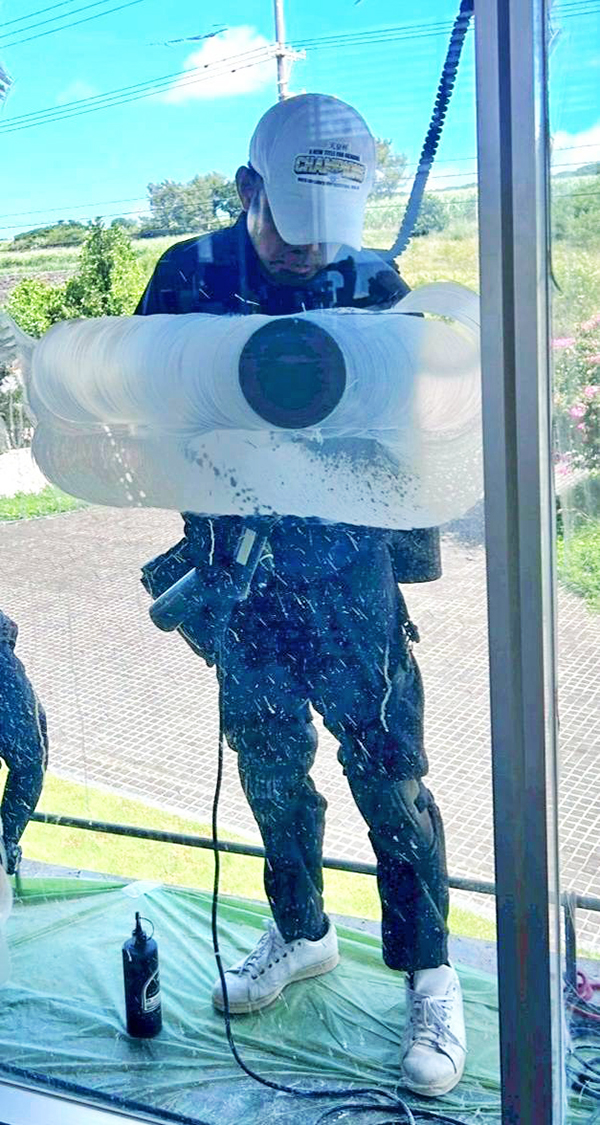 ほかにも建物内の快適性を保つため、窓ガラスの遮熱コーティングなども施工。「空調設備の光熱費は約30%ほど節約、金属ワイヤが入っている『網入りガラス』でも施工できます。研磨と遮熱コーティングともにコストと二酸化炭素排出量を削減し、お財布にも環境にも優しいプランを提供しています」。
