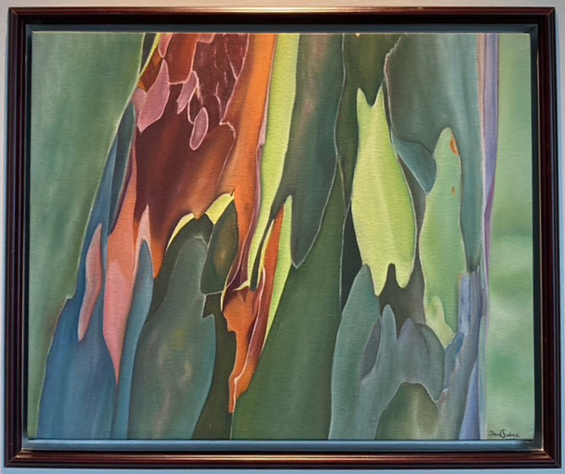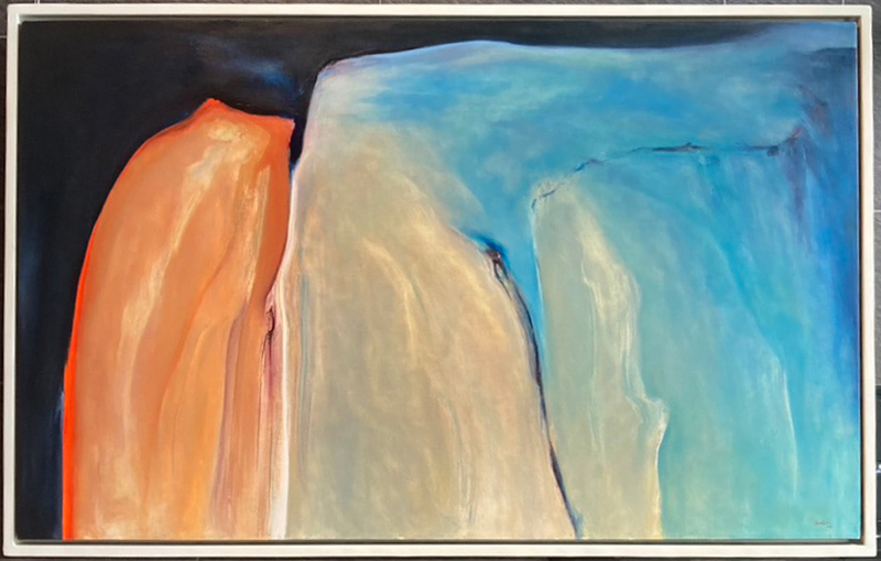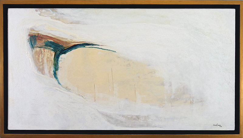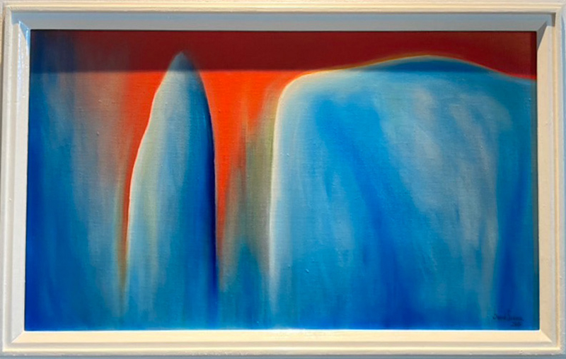 メキシコ出身のダビッドさんは、18歳から画家として国際的に活動し2015年から沖縄に拠点を置いている。レセプションは国際色豊かで通訳は沖縄出身の奥さまがされていた。色彩と形状が躍動する抽象画。油やアクリルで描かれた22点の作品には、鑑賞者の直感を大切にするためにタイトルが付けられてない。スピーチでダビッドさんは「自由に個々が楽しんでインスピレーションを感じとってほしい」と述べ、ゲストと会話し穏やかな時間を過ごしていた。リラックスした空気のなかで絵を眺めたり、音楽を聴いたり、久しぶりの友人と乾杯したり。私は「直感」という言葉の余韻に浸り帰路についた。その後、レセプションの終わりにはみんな踊り始めたそうだ。心のままに人生を謳歌(おうか)する。私が作品から受けた直感は「鼓動」だったかもしれない。