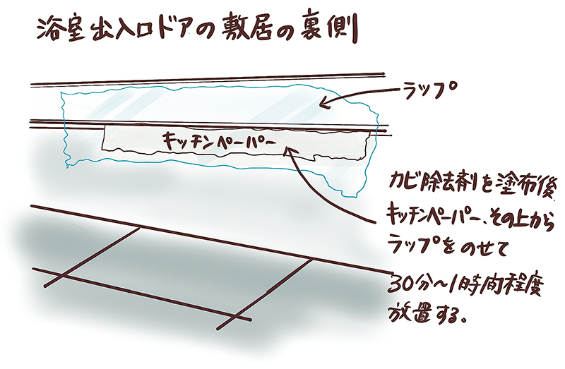 水分が多く、菌の温床になりやすい場所。11月のうちにしっかりお掃除しておくと、年末まで快適に。カビ取り剤を使うときは、「こすらず、置く」のがこつ。カビ取り剤を散布した後30分ほど、ラップをかぶせて置いてからスポンジで軽くこすれば、素材も傷みにくくなります。