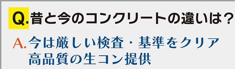 現在は検査が義務化され基準値も明確になりました。例えば生コンに使われている海砂は、原材料の時点で除塩状況を確認。さらに製造工程、完成した製品でも、塩化物の含有量試験を行っています。こうした仕組みがしっかり確立されたことが、高品質の生コンを安定供給する今につながっています。