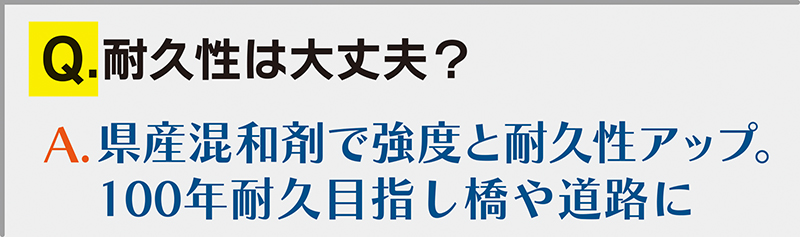 身近な建造物としては、2015年1月に開通した伊良部大橋があります。100年耐久を目指して県の土木建築部が県産フライアッシュコンクリートを採用した初の海上橋です。南風原町と南城市を結ぶ南部東道路や、本部湾岸壁工事などにも使われています。