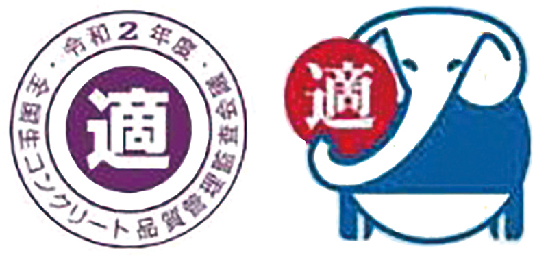 さらに生コン業界では、全国統一の「品質管理監査制度」を設け、国家規格JISの審査に業界独自の基準を上乗せした、より厳しい立ち入り監査を年1回実施しています。基準を満たした工場には、全国品質管理監査会議から「○適マーク」=上左、沖縄県品質管理監査会議から「合格証」が交付されます。