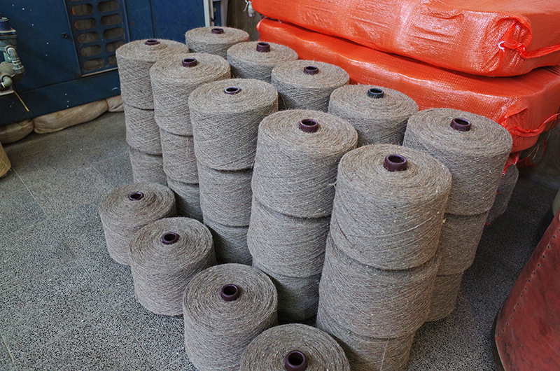 ウール糸の完成。この後、人の手で袋詰めされ出荷される