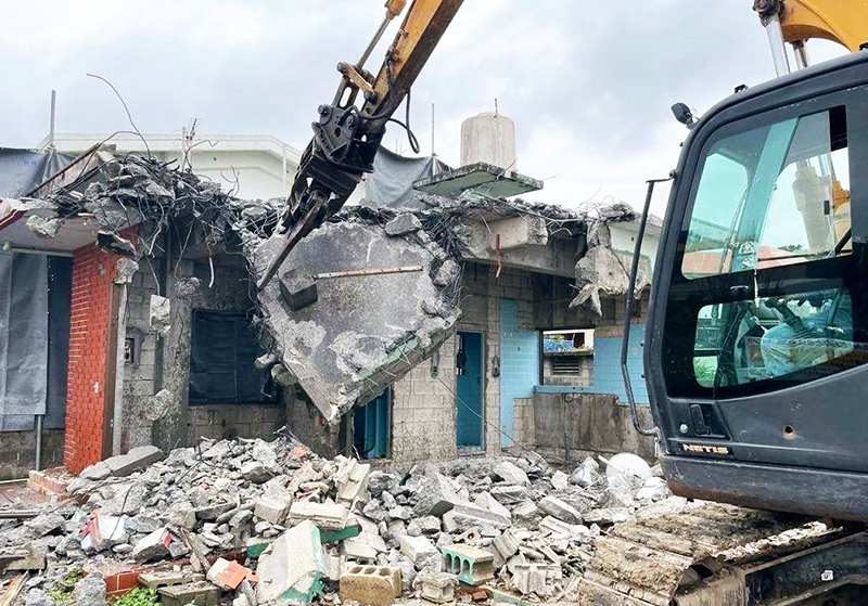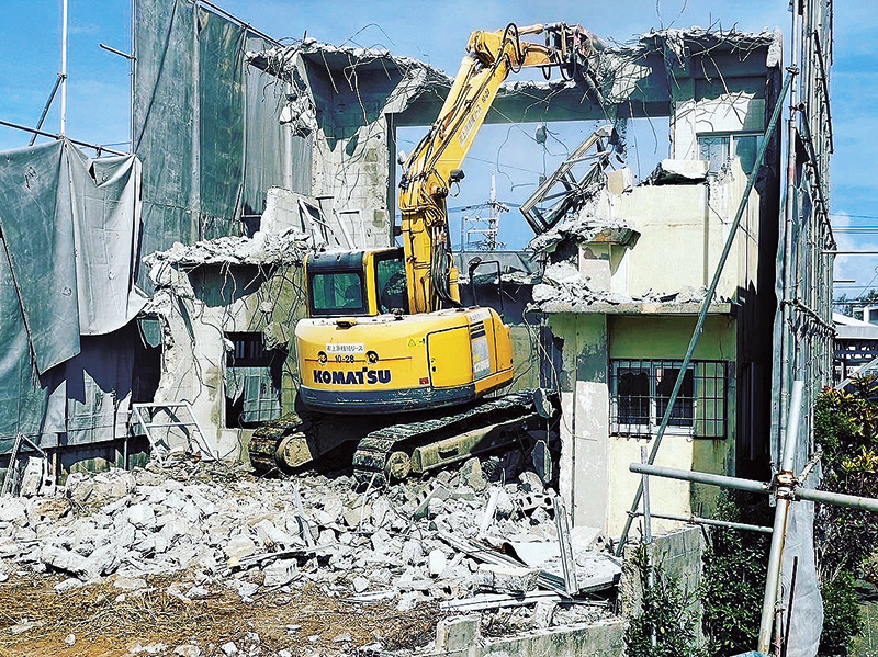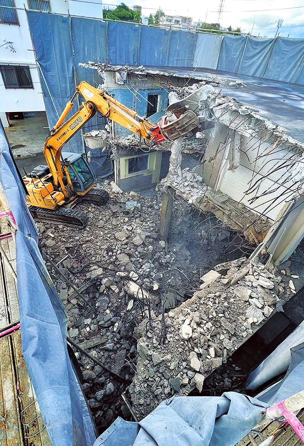 2025年に沖縄市で行った工事の現場の様子。鉄筋コンクリートブロック造2階建てを解体した