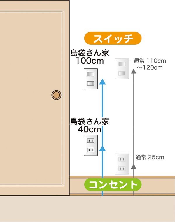 スイッチ低く コンセント高く