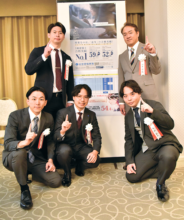 2025年度の建築士試験の合格者が昨年末、発表された。総合資格学院沖縄校(那覇市久茂地)の1級建築士設計製図試験合格者は、2015年から11年間で計153人、全合格者数に占める割合は54.4%と県内トップを誇っている。1月12日には那覇市内のホテルで、合格者や建築団体関係者を招いて祝賀会を開催。その模様と併せて、近年の受験生と試験の傾向、同校の取り組みや合格者の声を紹介する。