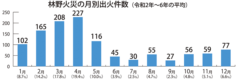 同注意報・警報の創設のきっかけとなったのは25年2月に、岩手県大船渡市で発生した大規模な林野火災です。降水量が少なく、空気が乾燥する2月から5月の期間において、火災予防の実効性を高めるために創設されました。