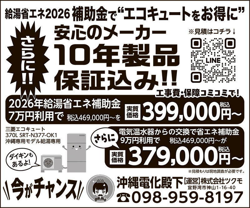 [宜野湾市神山]給湯省エネ2026 補助金で”エコキュートをお得に”|株式会社 ツクモ