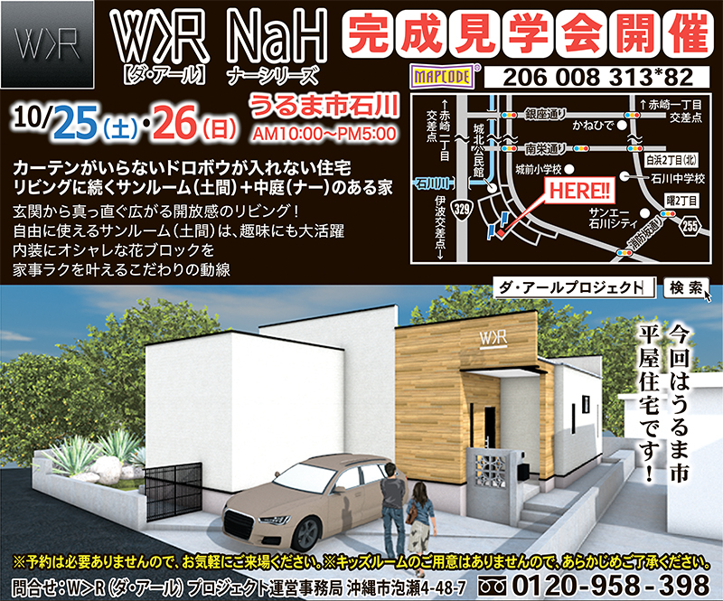 [うるま市石川]完成見学会開催|W >R(ダ・アール)プロジェクト運営事務局 有限会社ハンエイ