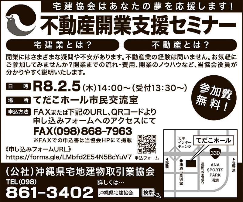 [浦添市仲間]不動産開業支援セミナー|(公社)沖縄県宅地建物取引業協会