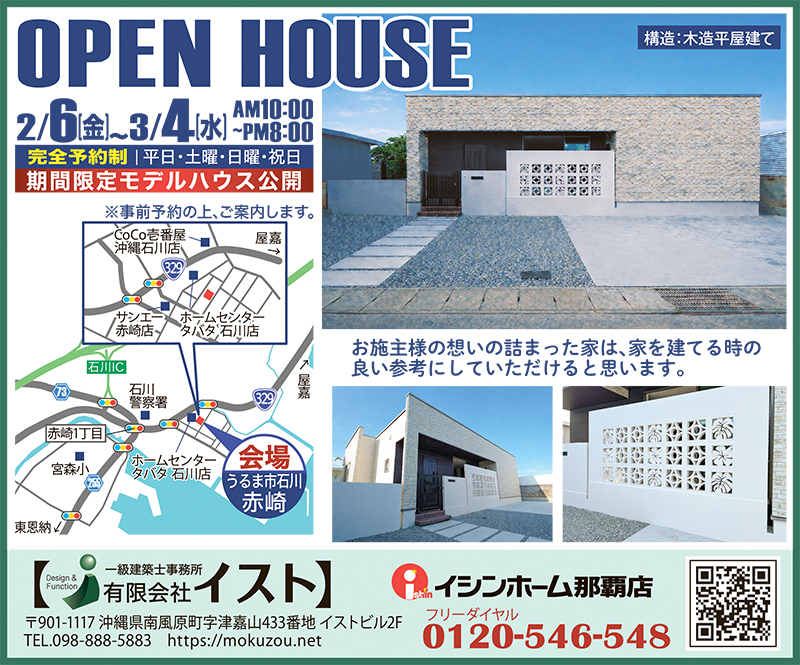 [うるま市石川赤崎]OPEN HOUSE|有限会社 イスト|イシンオーム那覇店