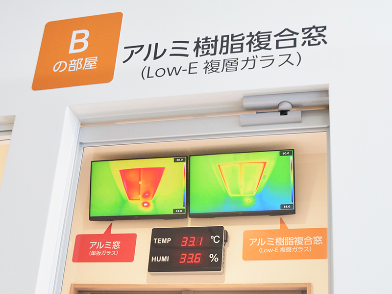 新設された遮熱体感ルームでは、赤外線を可視化するサーモグラフィでも温度の違いを確認できる