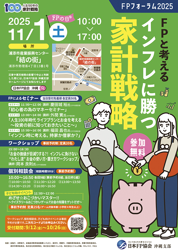 [情報]11月1日 浦添市でFPフォーラム2025|ミナーや個別相談会を開催