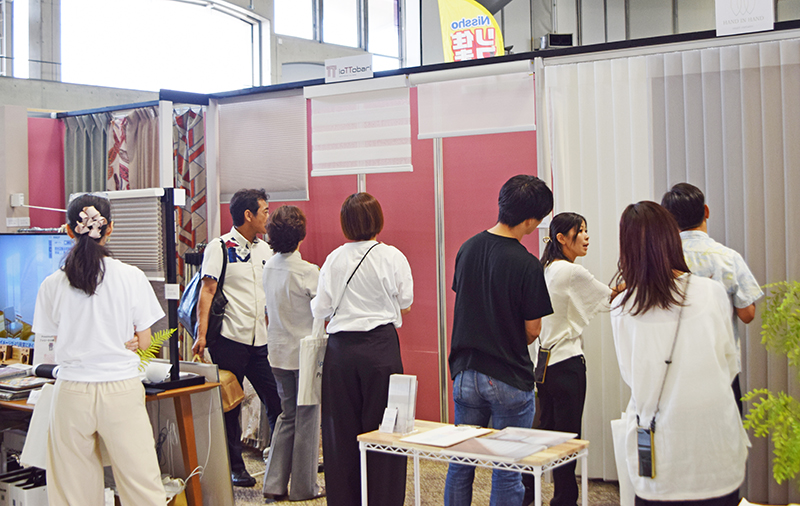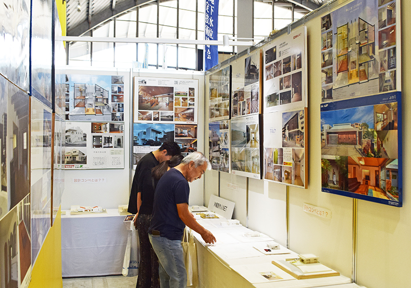 会場では沖縄の気候に合った家づくりを後押しする製品やサービスを紹介した。建設に欠かせない地盤調査や地盤改良、住宅性能を高めるさまざまな断熱材や遮熱シート、窓フィルムなどのブースが並んだほか、相談者が住宅ローンや新築・リフォームについて相談する光景も見られた。