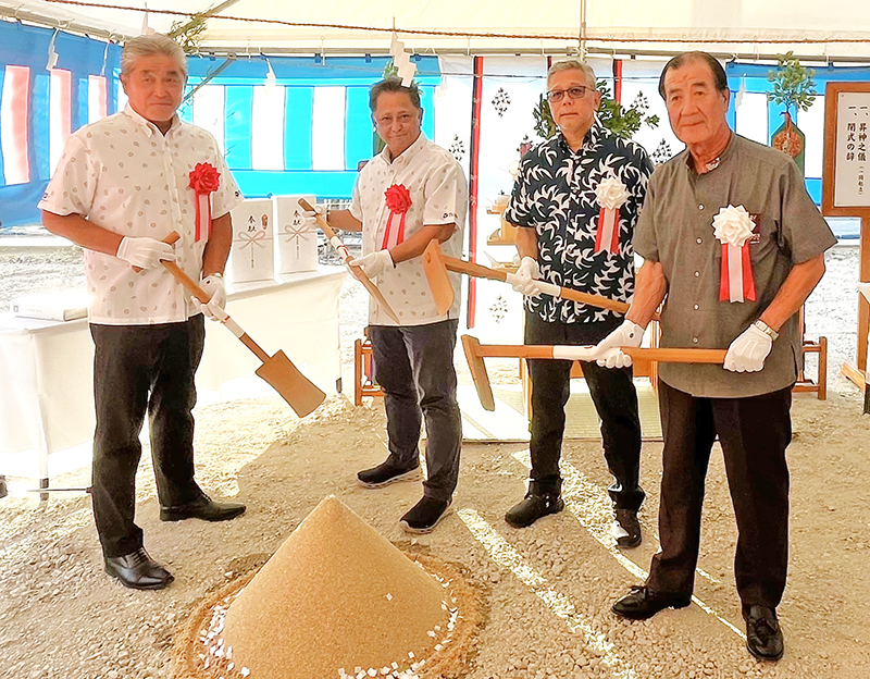 (株)日商エステム(大阪府、浅井悦裕代表取締役社長)とエールクリエイト(株)(那覇市、仲田憲仁代表取締役)は9月29日、那覇市西で分譲マンション「ワイズエステムコート旭橋駅ザ・ウェスト」の地鎮祭を行った=写真。