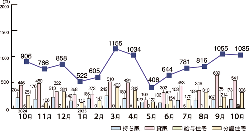 [情報]2カ月連続で1000戸超え|2025年10月の県内新設住宅着工数