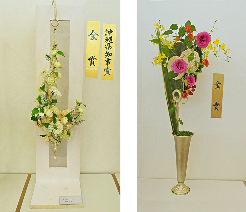 その中から一般部門は洲鎌広明さん(世界で一つだけの花屋)の作品「金婚式へ向けて…約束のブーケ」が金賞と県知事賞に、学生部門は柳愛美さん(日本経済大学2年)の「めぐる記憶」が選ばれた。