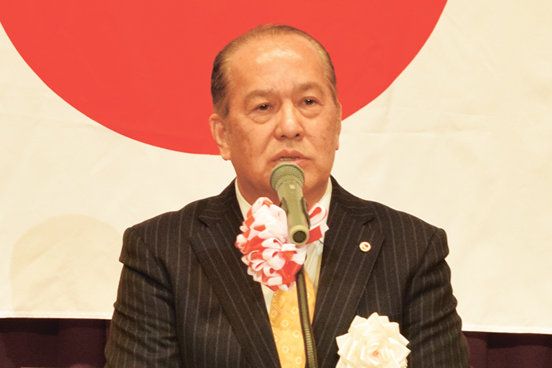 渡久地会長は「昨年は5月の総会や、9月の不動産の日に開催したイベントを始め、全ての事業が滞りなく終了した。今年は午(うま)年で、飛躍の年だといわれている。協会や関連団体を含め、なお一層の飛躍を目指したい」と抱負を述べた=写真。
